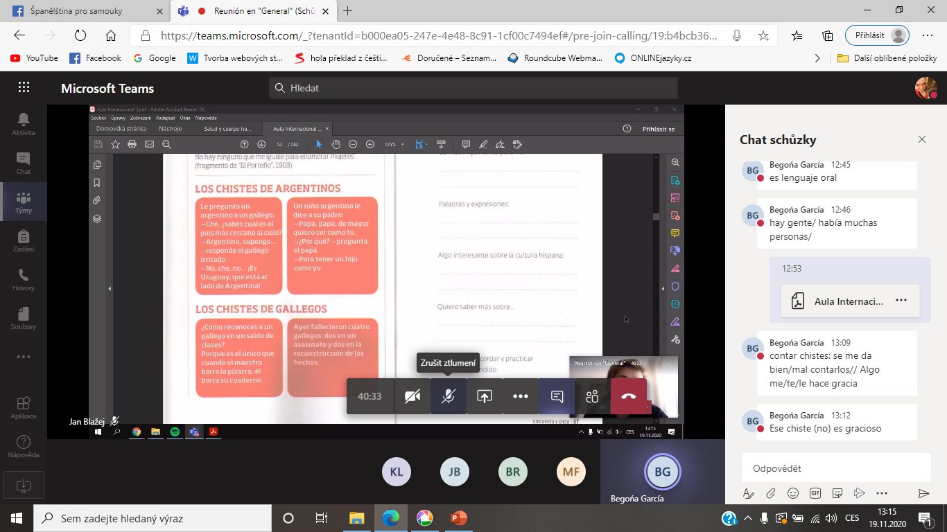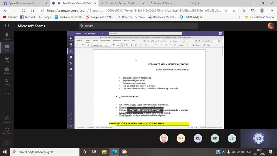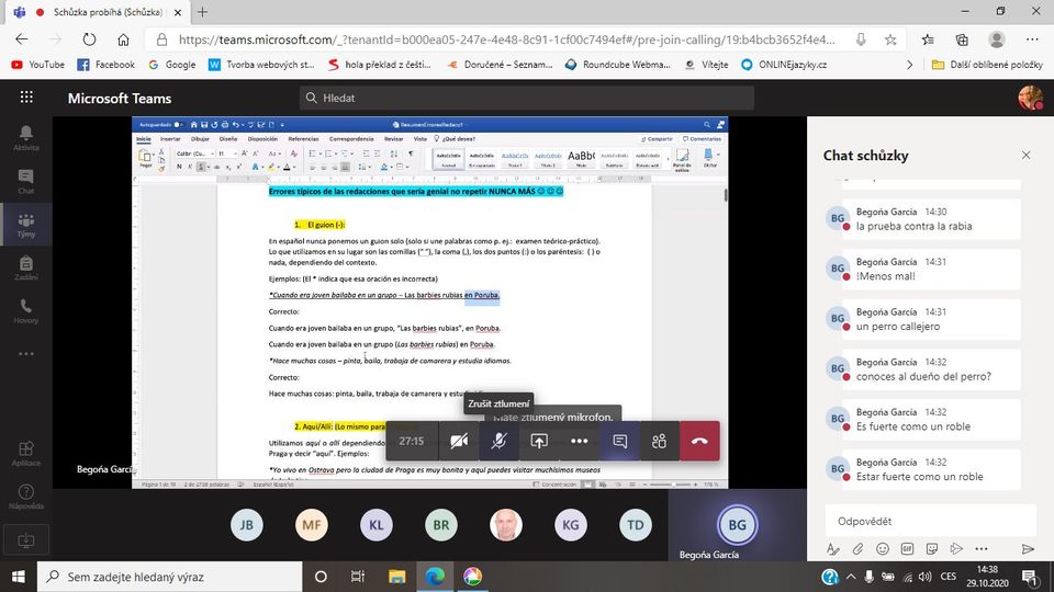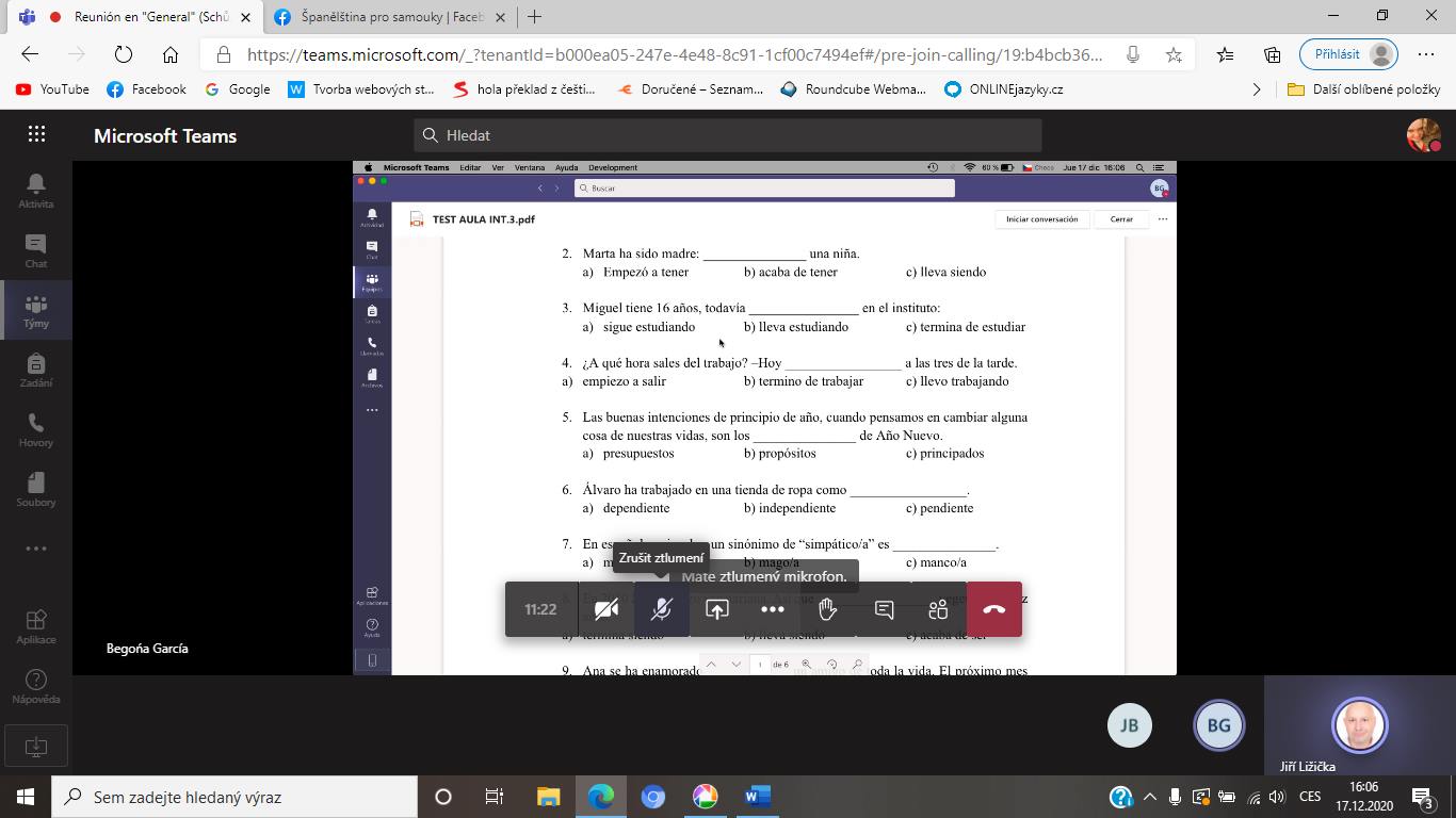 Paní učitelka Begoňa nám před dnešní hodinou připravila test o sedmdesáti otázkách, takže jsme si ho v hodině prošli, ptali jsme se na chyby a na to, co nás zajímalo, řekli jsme si něco o zkouškách, popřáli si krásné Vánoce a byl konec dne. 😊 Naštěstí tento předmět budu mít příští semestr taky.